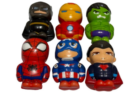 Antistresinių minkomų žaislų rinkinys su megstamiausiais vaiko herojais. Komplekta sudaro: