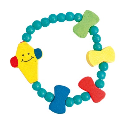 Apyrankė su spalvotais, mediniais, įvairių formų karoliukais.