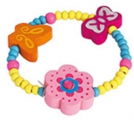 Apyrankė su spalvotais, mediniais, įvairių formų karoliukais.