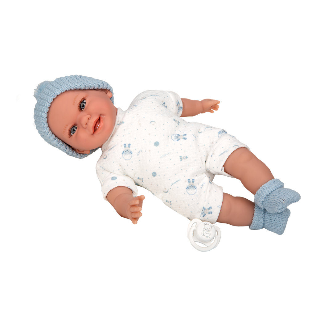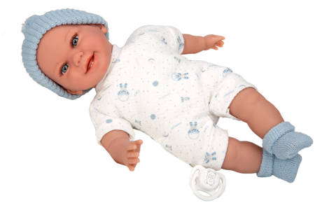 Arias kūdikėlis su garsu, su žydra kepuryte, 34 cm