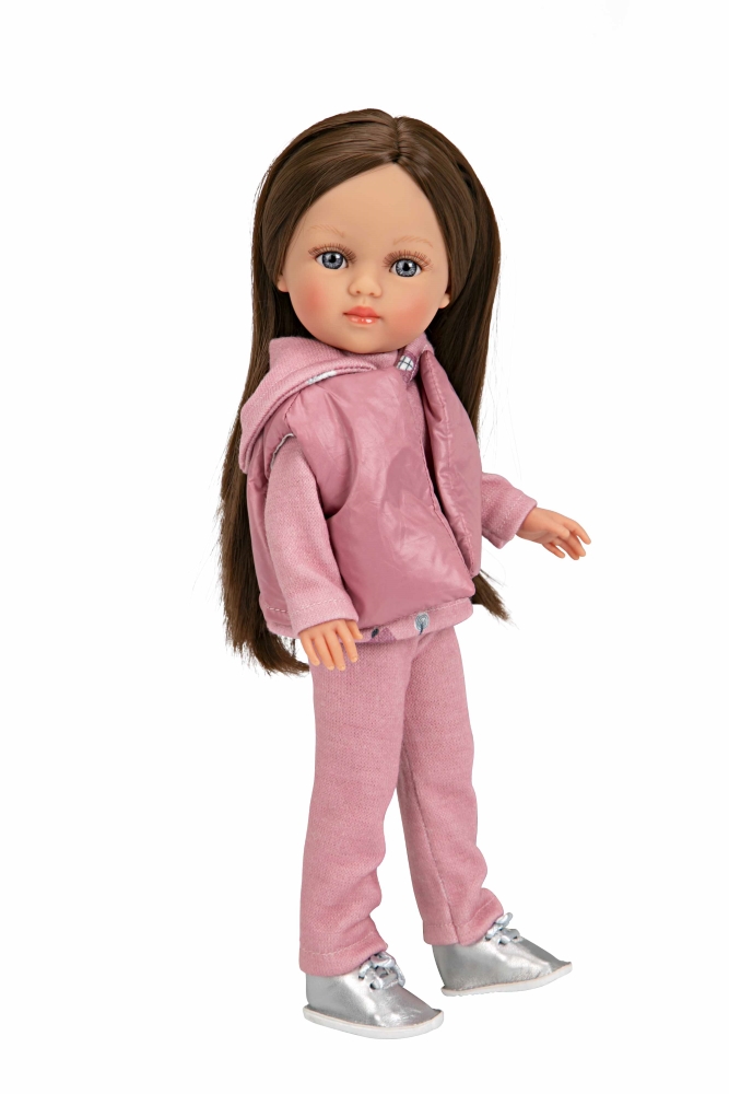 - Lėlytė aprengta stilingais rožiniais sportiniais rūbeliais, sidabriniais užrišamais batais.