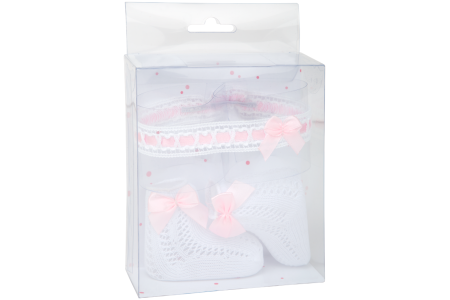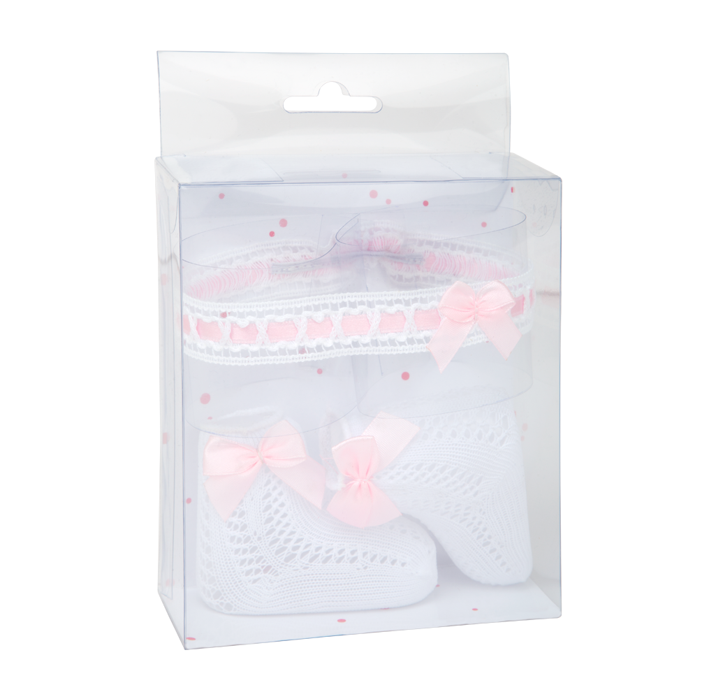 Arias aksesuarų rinkinys lėlėms kūdikiams – kojinytės ir lankelis.