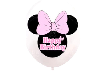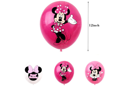 6 vnt – rožinių , 6 vnt baltų , 6 vnt raudonų balionu su minnie mause piešiniais.
