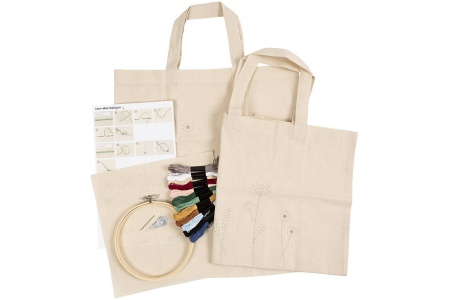 - 2 medžiaginiai maišeliai su atspausdintais siuvinėjimo šablonais.