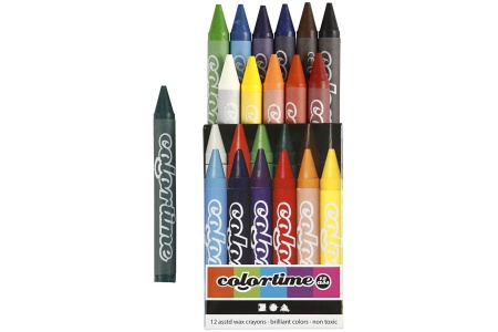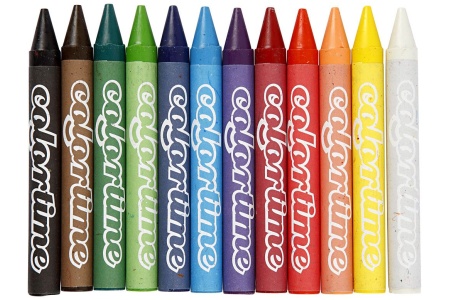 12 spalvingų vaškinių kreidelių.