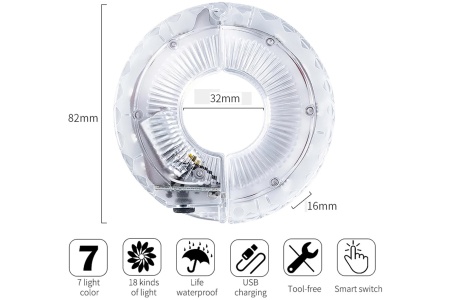 Maitinamas naudojant įmontuotą ličio bateriją, įkraunamas USB, rato lemputė gali nepertraukiamai veikti 12 valandų, todėl nereikės nuolat keisti baterijų.