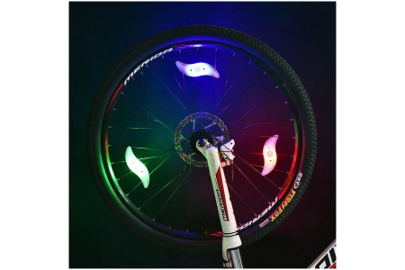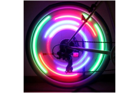 LED apšvietimas montuojamas ant dviračio rato stipinų, suteikia nuostabų šviesos efektą, sukuria spalvingą neoninę šviesą važiuojant.