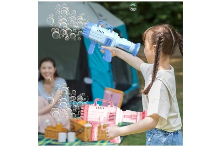 Muilo burbulų šautuvas. Gaminyje yra talpus skysčio bakelis ir 32 išleidimo antgaliai, kurie vienu metu išleidžia šimtus burbuliukų. Patogus, su papildoma nešiojimo rankena, kuri padidina žaislo praktinę vertę. Puiki pramoga visiems vaikams.