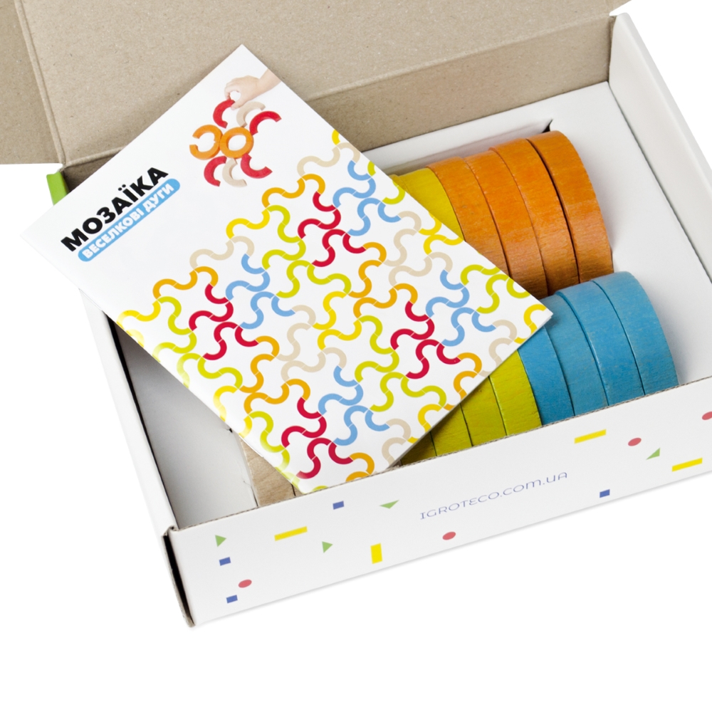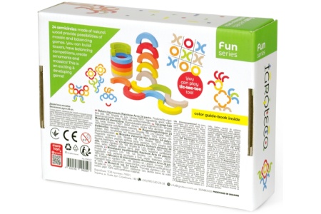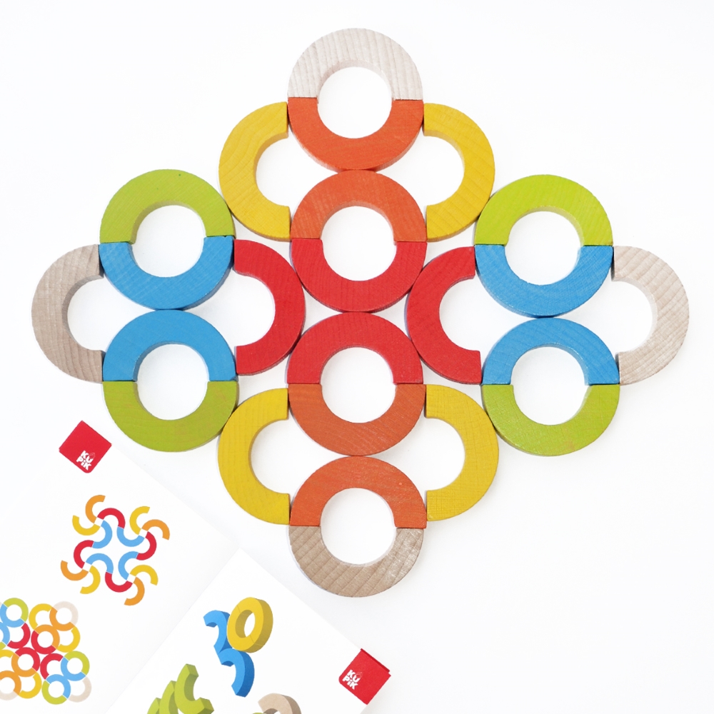 Rinkinyje 24 spalvoti puslankiai ir žaidimo instrukcijų knygelė.