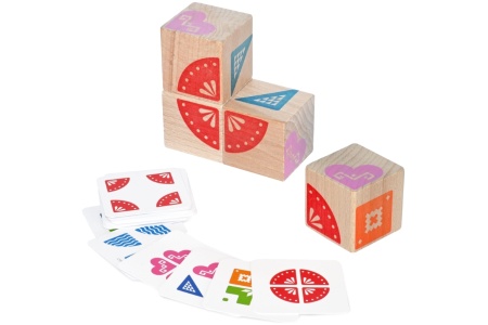 Pasirinkite kortelę ir sudėliokite 4 kubelius taip, kad viršutinė kubelio dalis atitiktų kortelėje nurodytą schemą.