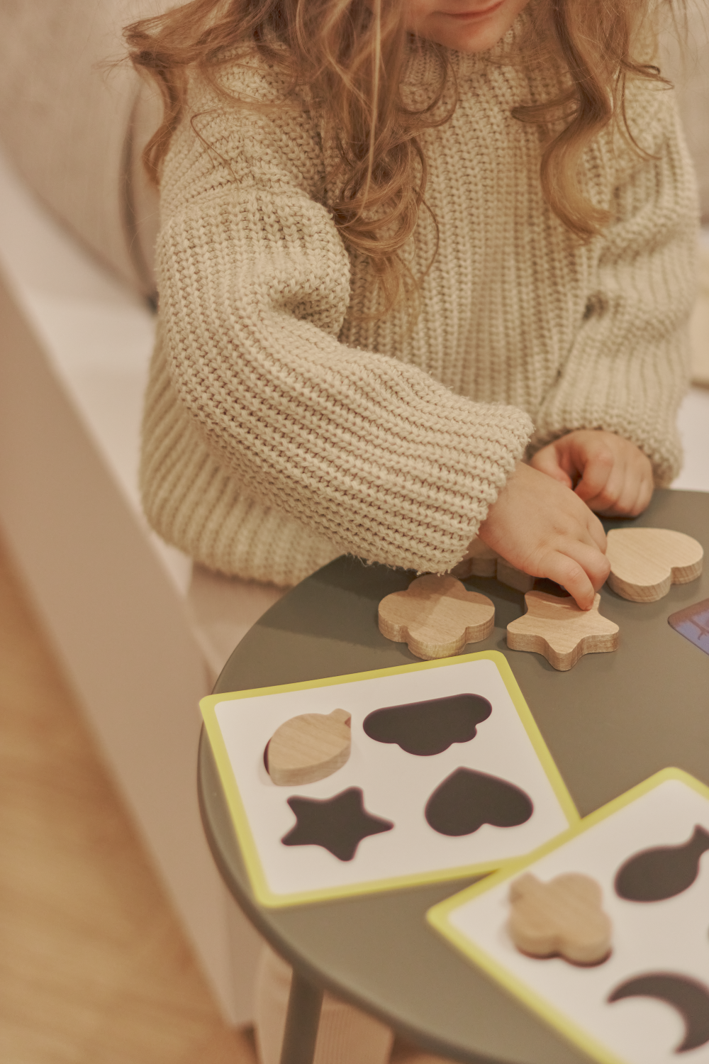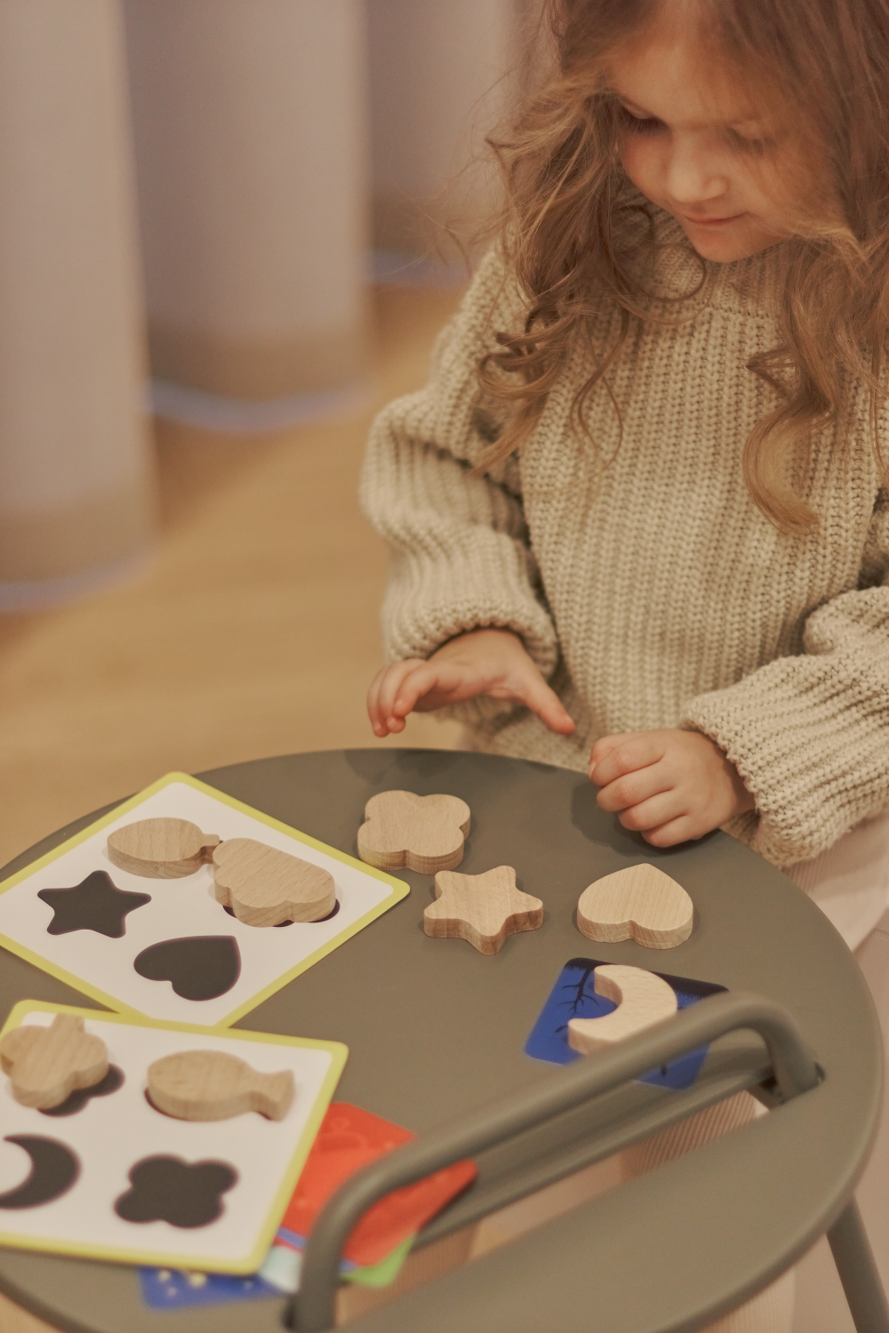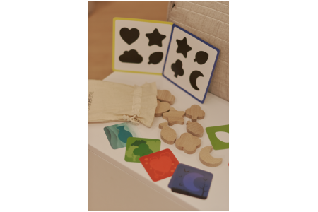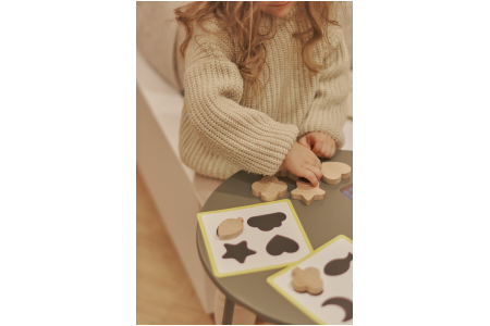 - Surasti medinę formelę, kuri atitinka siluetą ant spalvotos kortelės.