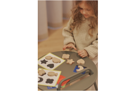 Šis žaidimas yra skirtas sensorinių įgūdžių lavinimui. Liesdamas skirtingas medines figūras, vaikas tobulina lytėjimo jautrumą, smulkiosios motorikos įgūdžius ir lavina kalbos gebėjimus jas įvardindamas ir apibūdindamas.