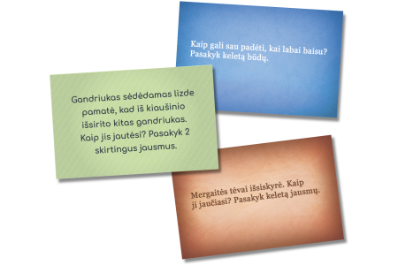 Spalvinga žaidimo lenta padeda sukurti atitinkamos aplinkos nuotaiką, o įvairių sunkumo lygių klausimai žaidimą dar labiau intriguoja. Žaidimo vedėjas (suaugęs: pedagogas, psichologas, socialinis pedagogas, mama ir kt.) – irgi aktyvus žaidimo dalyvis, kuris turi padėti vaikams surasti tinkamiausius sprendimus jausmų pasaulyje.