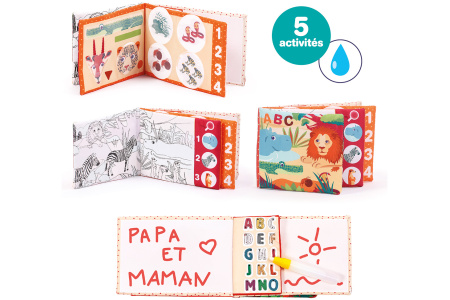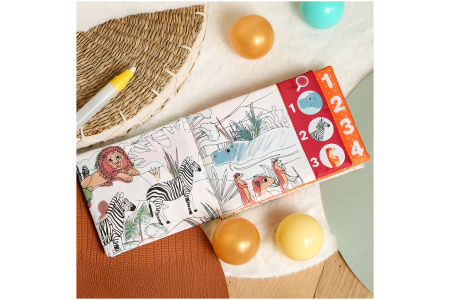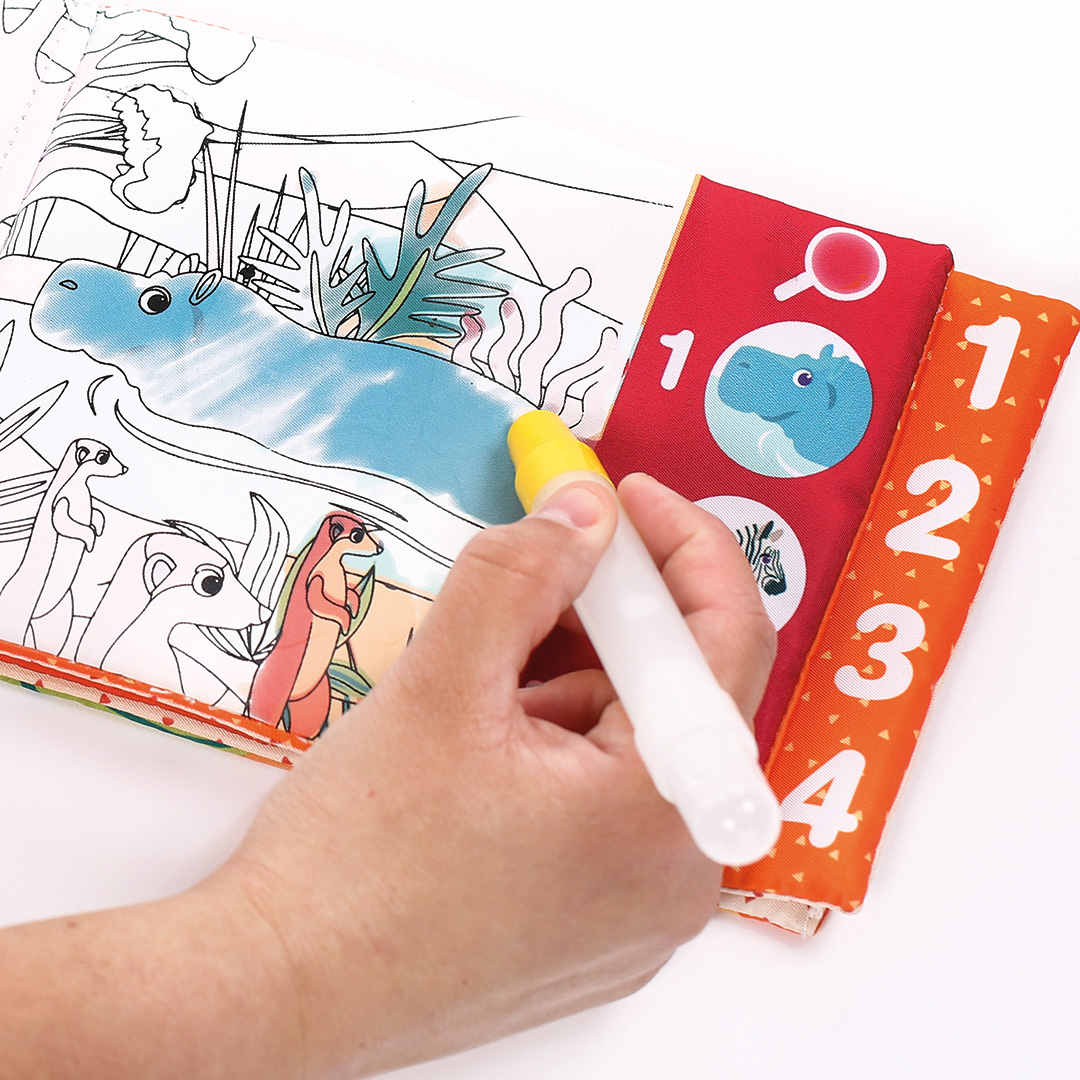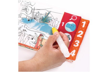 - Magiškas spalvinimas: su vandens pripildytu markeriu vaikas galės nuspalvinti džiunglių gyvūnus ir gamtovaizdžius. Spalvos atsiskleidžia po truputį – atrodo magiškai!