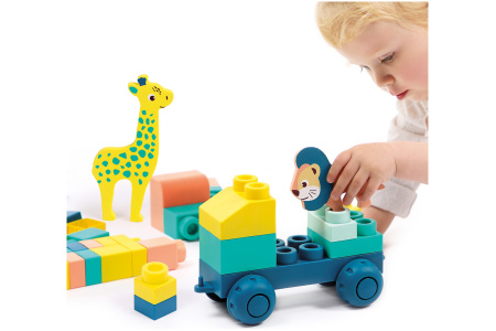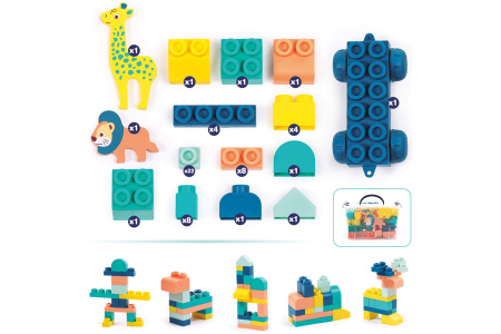 Atraskite kūrimo džiaugsmą! Statykite bokštus, linksmus gyvūnėlius, nuostabias mašinėles. Viskas įmanoma su šiomis kaladėlėmis, pritaikytomis mažoms vaikų rankytėms!