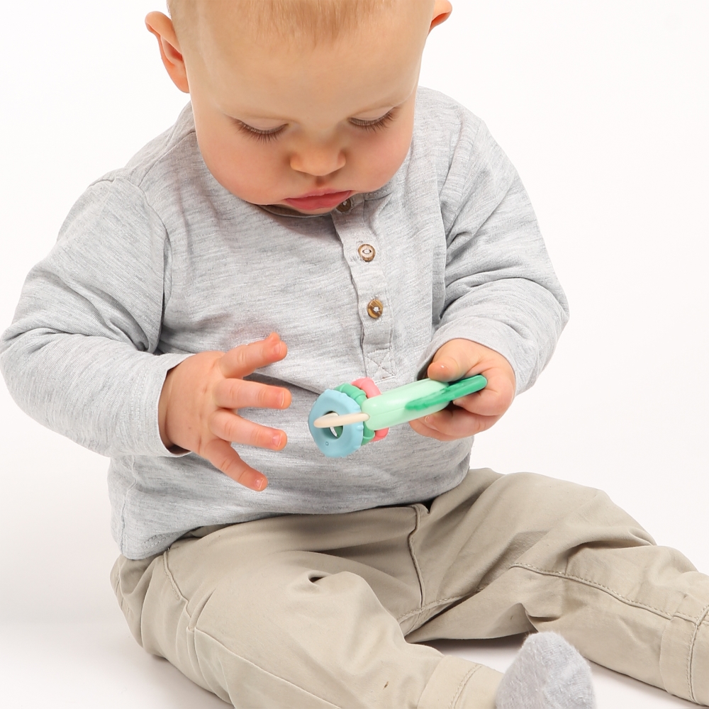 Barškučiai patvarūs, silikoninės barškučių dalys pritaikytos kramtymui.