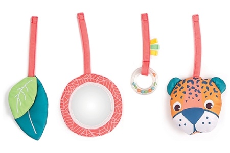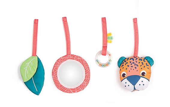 4 žaisliukai gali būti tvirtinami skirtingose vietose.