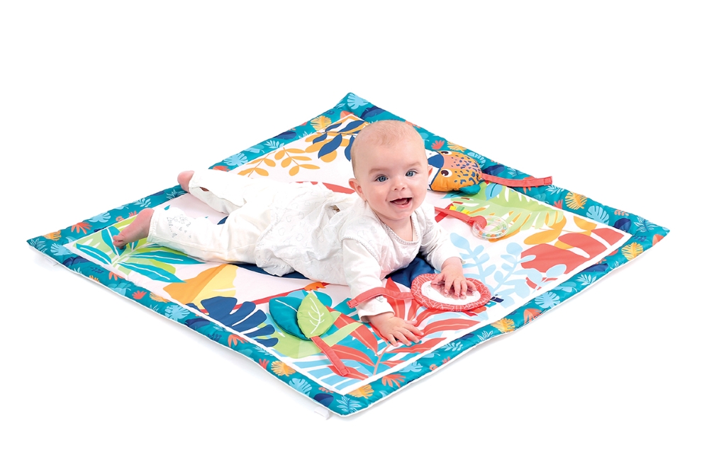 Ryškus kūdikio žaidimų kilimėlis, skirtas lavinti vaiko sensorinius pojūčius, skatinti smalsumą, vystyti judesių koordinaciją ir motoriką.