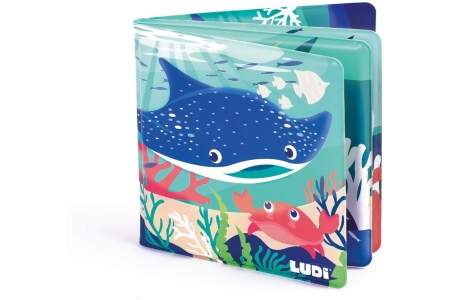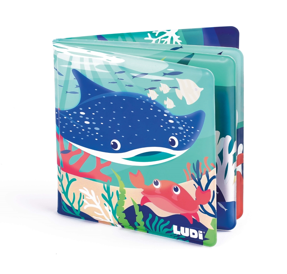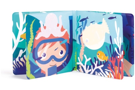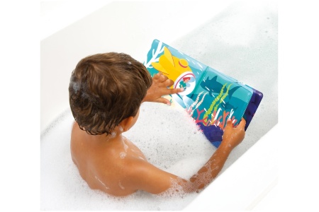 Maudymosi knygelė su mielomis jūros gyvūnėlių iliustracijomis, kurios atsiskleidžia sušlapusios! Kai paveikslėliai išdžiūsta, gyvūnėliai vėl pasislepia.