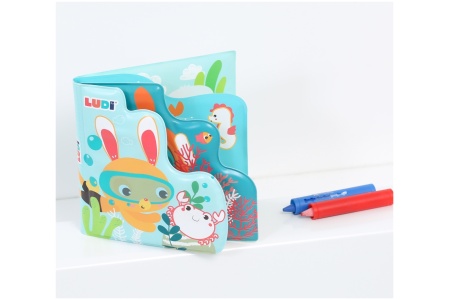 Rinkinyje pridėtos 2 kreidutės, kurios lengvai nusiplauna nuo knygelės su vandeniu.