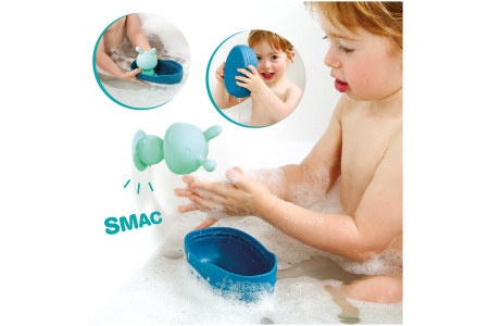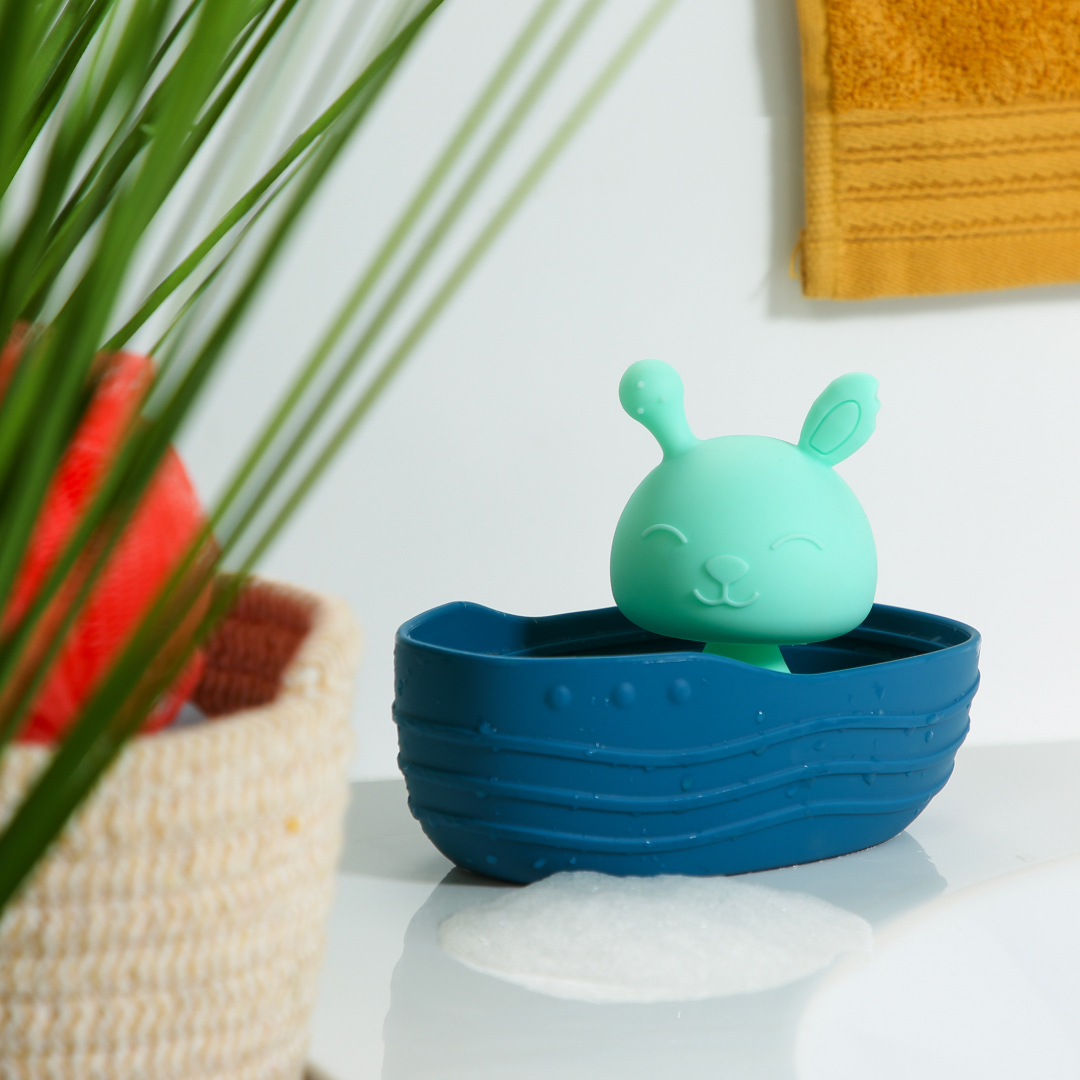 Jūrų Triušelis su savo miela silikonine valtele kviečia mažylius tyrinėti vandenį.