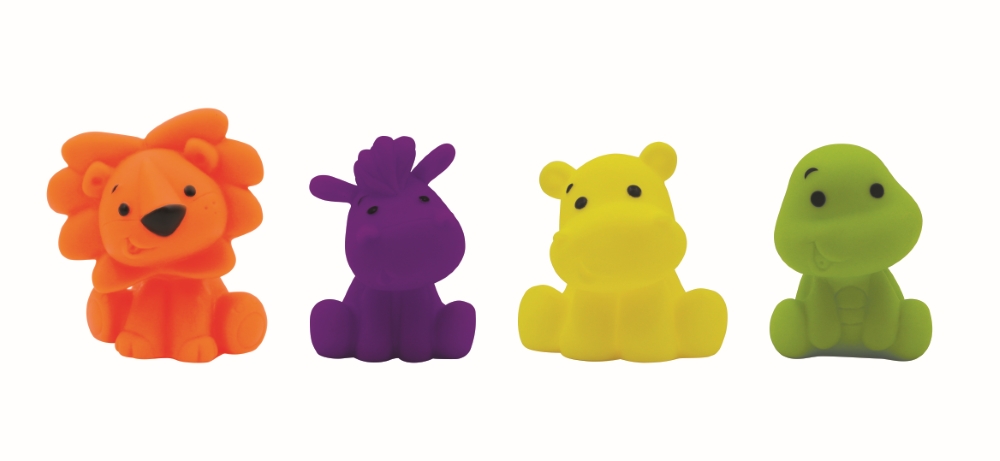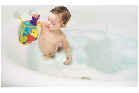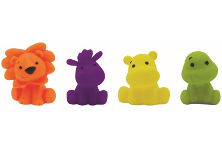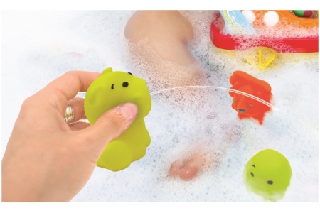 Rinkinyje yra 4 žaisliukai-purkštukai ir su prie vonios tvirtinamas tinklelis, skirtas žaisliukams susidėti.