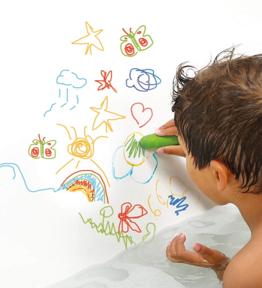 Vonioje piešti skirtos kreidelės, tai linksmas užsiėmimas maudantis.