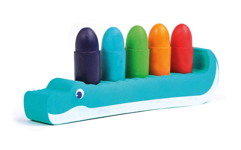 - Plūduriuojantis kreidelių laikiklis – krokodilas (21 x 3,5 x 5 cm).