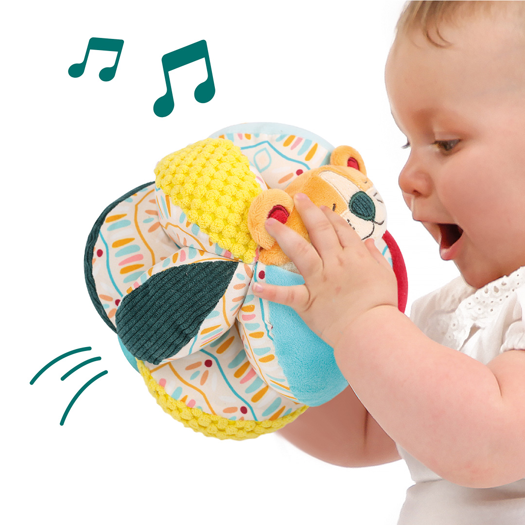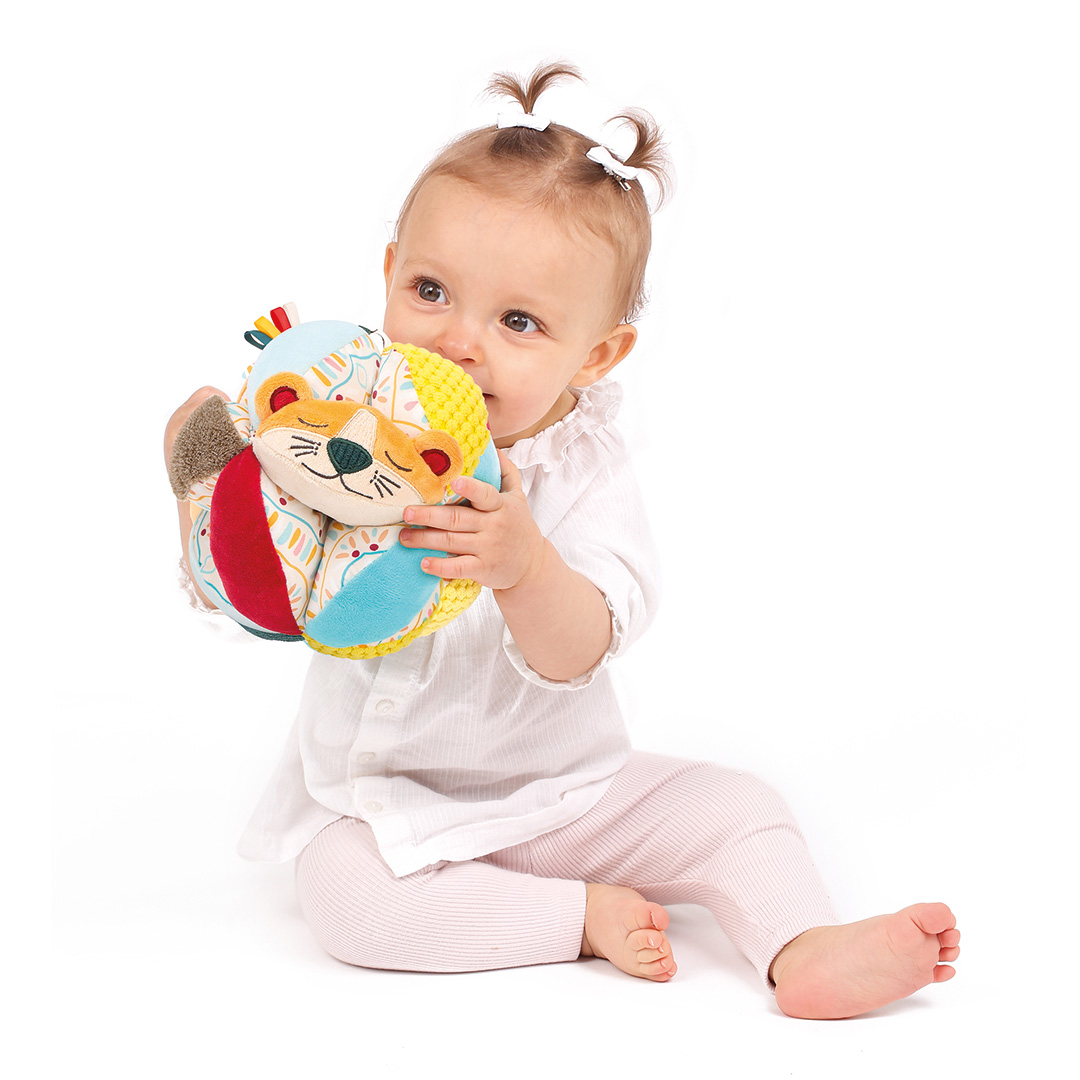 Minkštas ir žaismingas medžiaginis kamuoliukas skatinantis mažylio vystymąsi! Minkštos medvilnės ir poliesterio tekstūros ir miela liūto galvytė sužadina smalsumą ir skatina tyrinėti savo pojūčius.