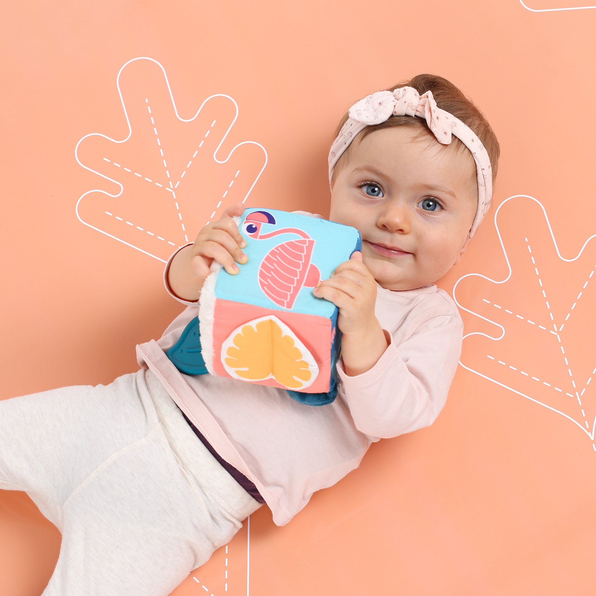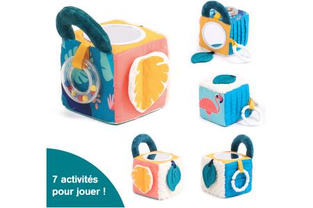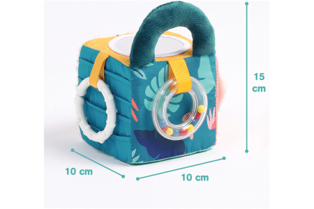 Kiekvieno kubo šonas su skirtingu audiniu ir paviršiumi.