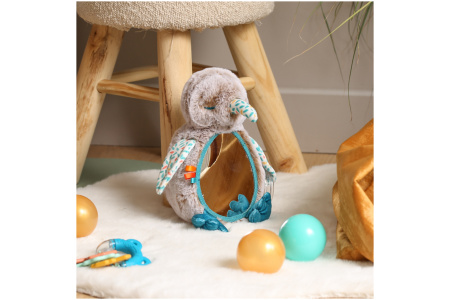 - Spalvotų karoliukų žiedas stimuliuoja klausą ir skatina rankų-akių koordinaciją.