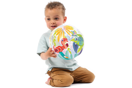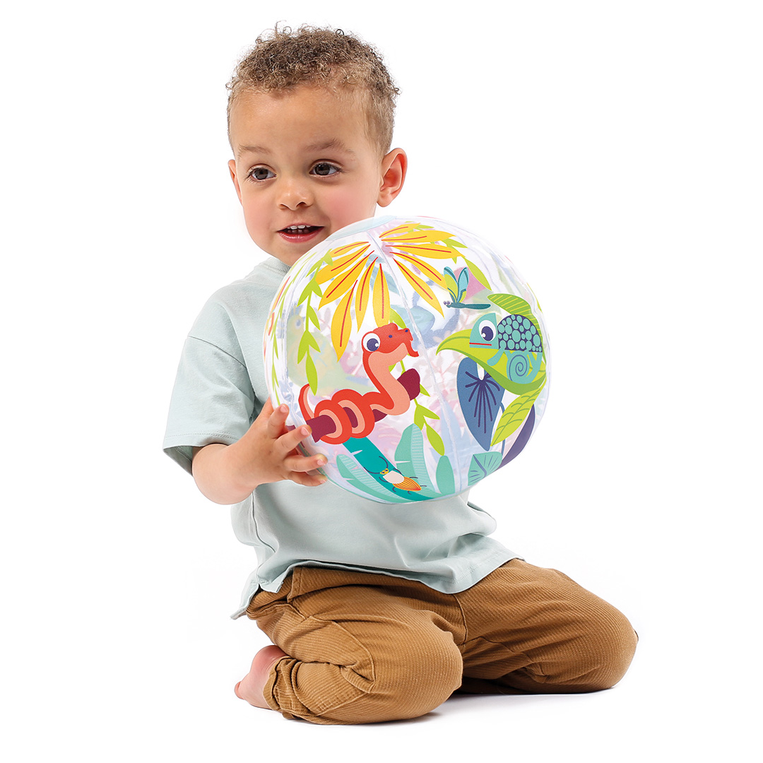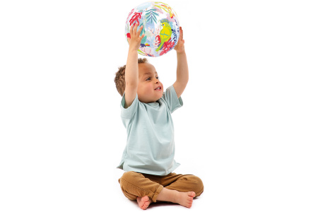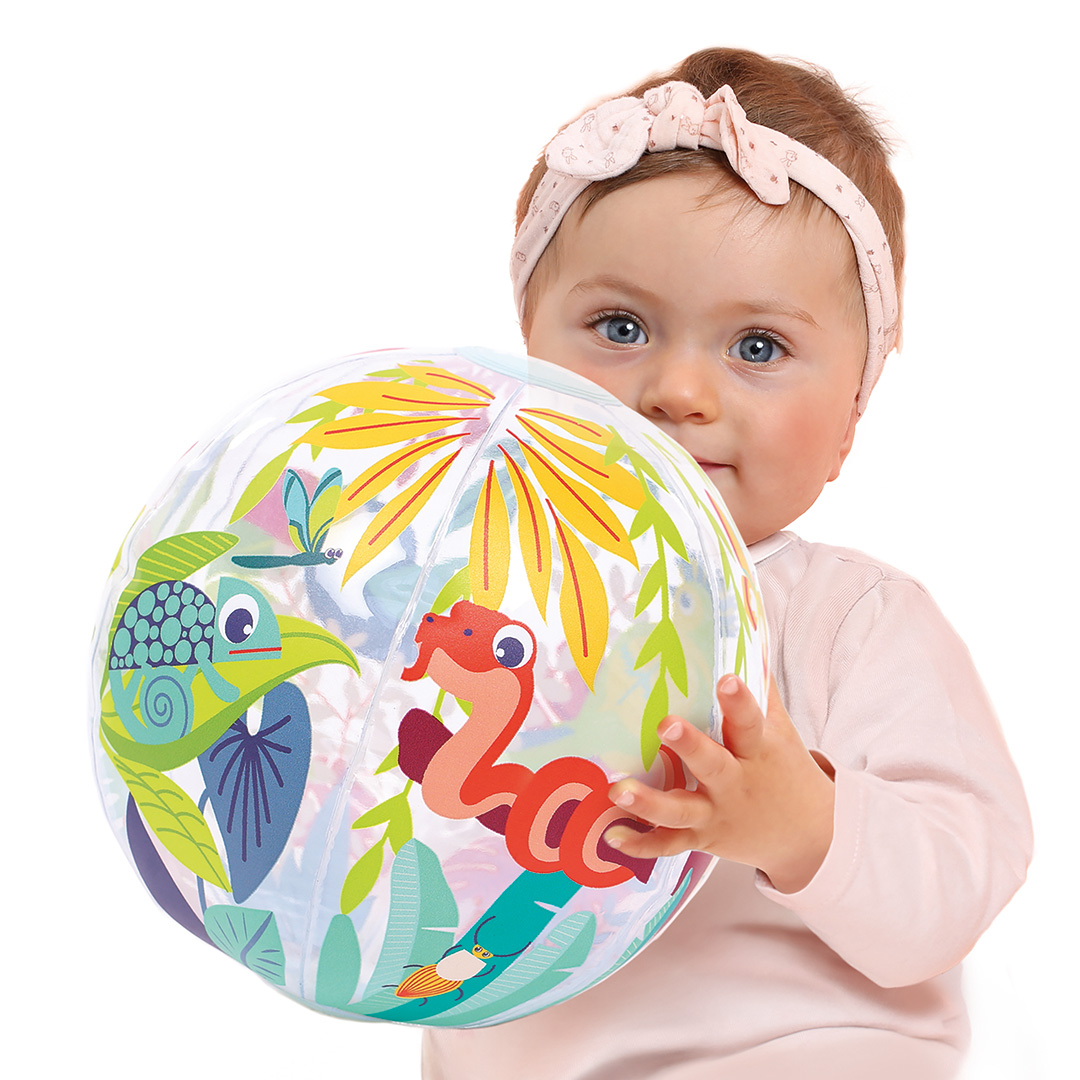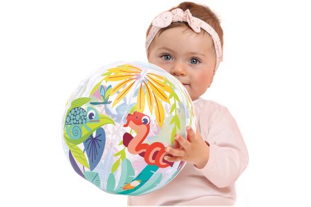Pipučiamas spalvotas kamuolys. Idealus mažoms rankytėms. Tinka žaisti lauke ir viduje.