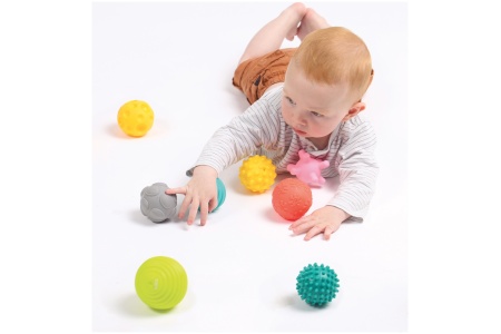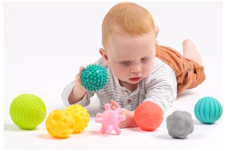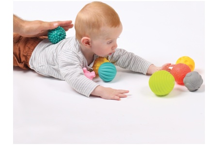 Švelniai pažadinkite skirtingus pojūčius žaisdami su skirtingų paviršių kamuoliukais.