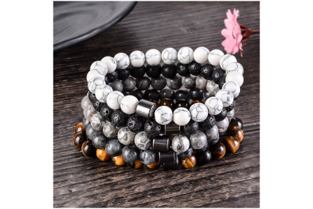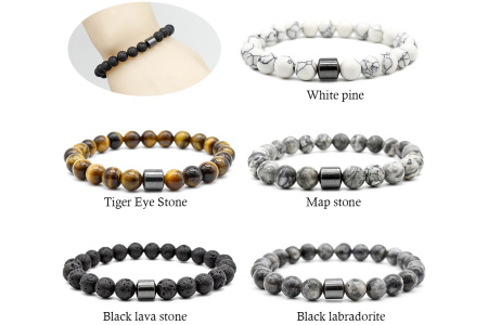 Karoliukai yra 8mm skersmens. Apyrankės ilgis universalus – karoliukai suverti ant guminės virvės, kuri prisitaiko prie riešo apimties.
