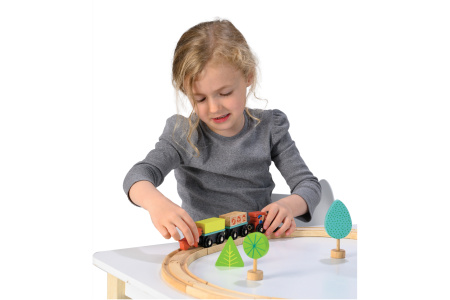 - Lokomotyvas ir 2 vagonėliai su magnetinėmis jungtimis.