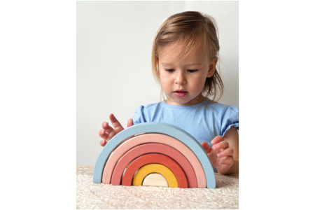 Dėliokite vaivorykštės lankus pagal dydį, sudėkite taip, kad išlaikytų balansą ar dėliokite kaip tiesiog geidžia širdis.