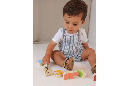 - 7 figūrėlės (krokodilas, žirafa, liūtas, dramblys, vėžlys, begemotas, zebras).