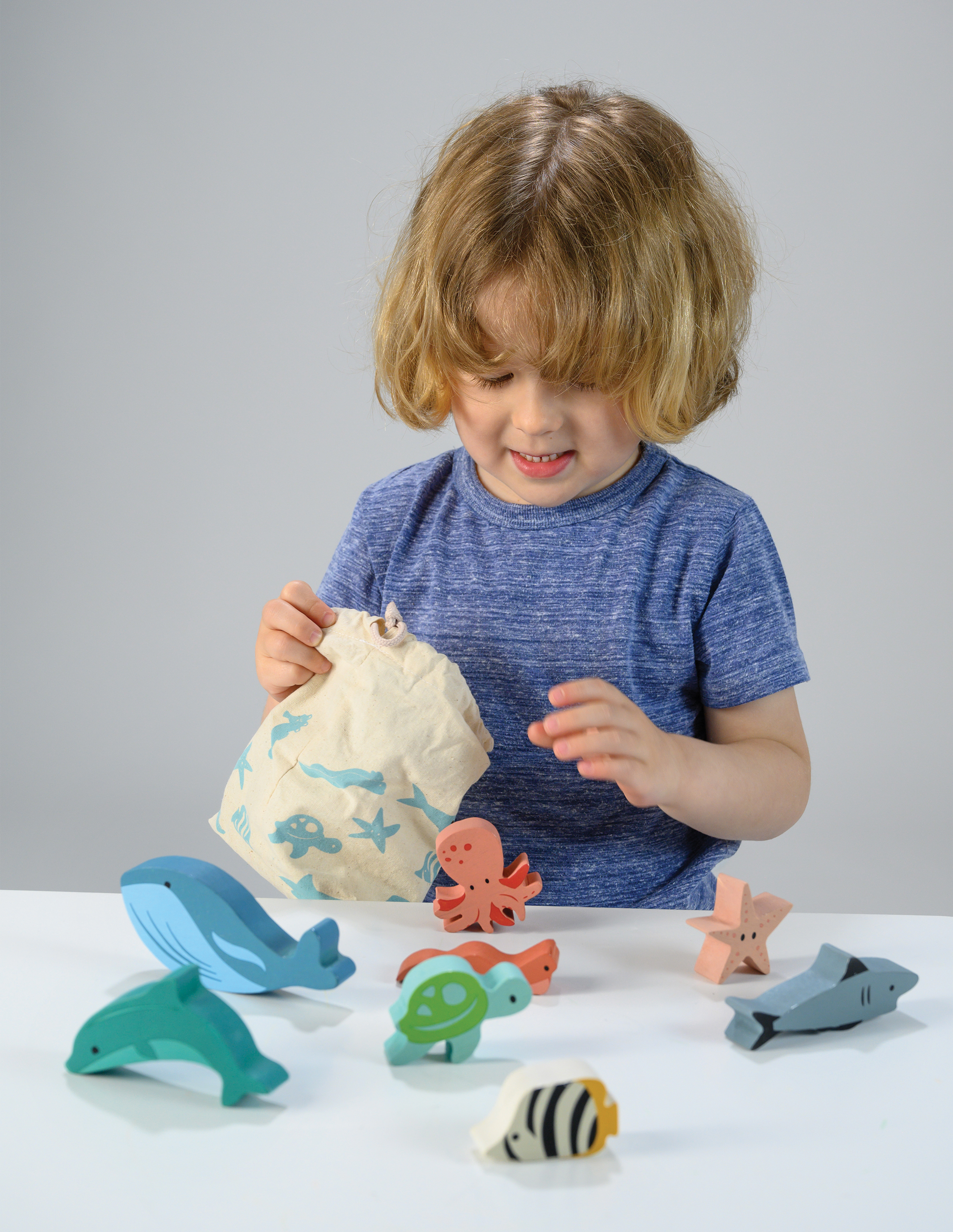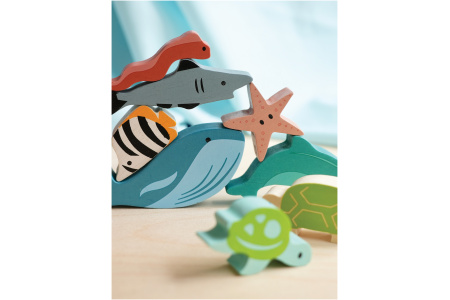 • 9 figūrėlės (banginis, delfinas, vėžlys, jūrų arkliukas, jūrų žvaigždė, aštuonkojis, ryklys, ungurys ir žuvelė jūrų angelas).