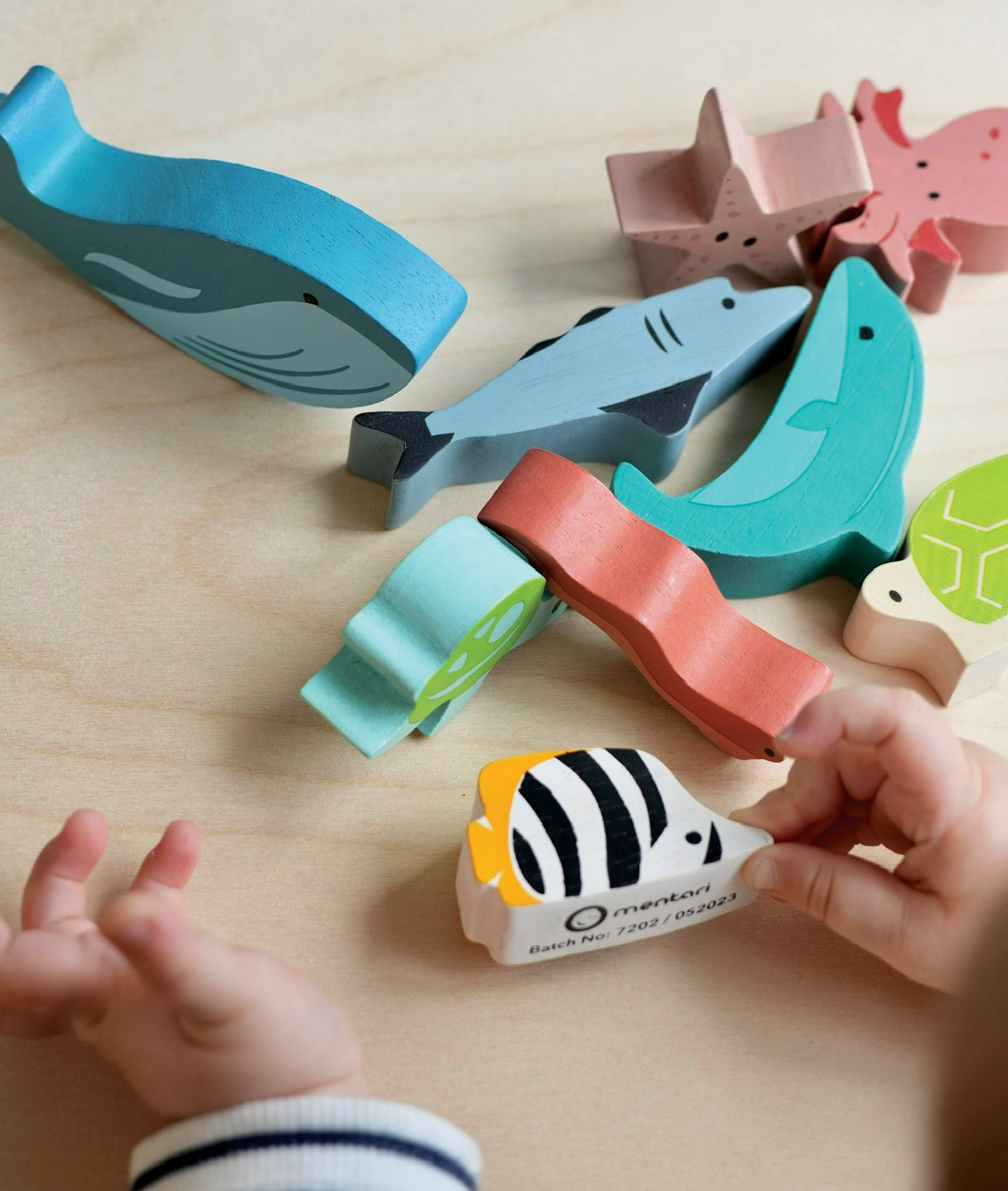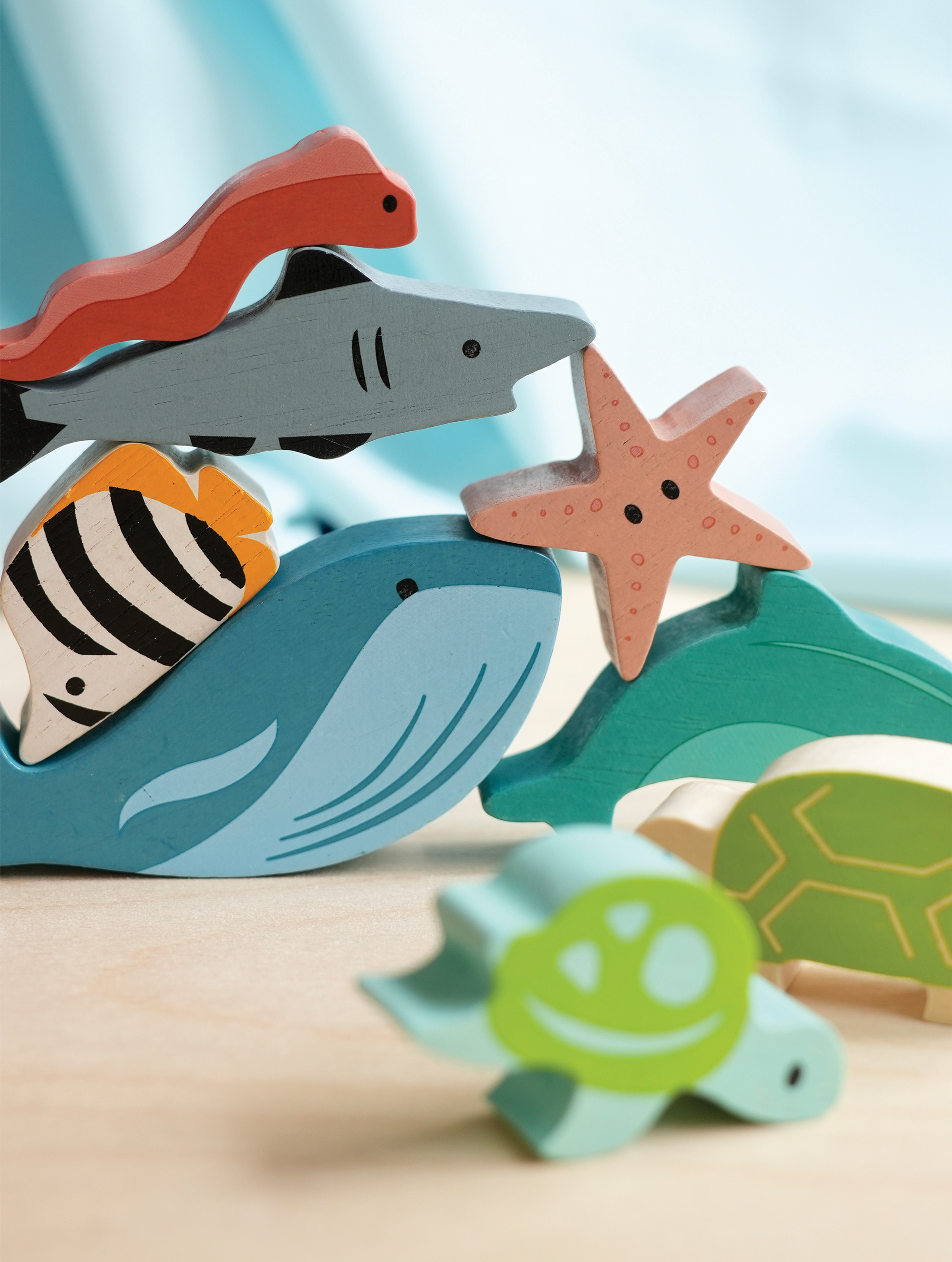 - 9 figūrėlės (banginis, delfinas, vėžlys, jūrų arkliukas, jūrų žvaigždė, aštuonkojis, ryklys, ungurys ir žuvelė jūrų angelas).