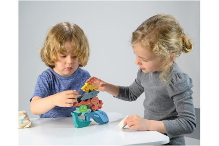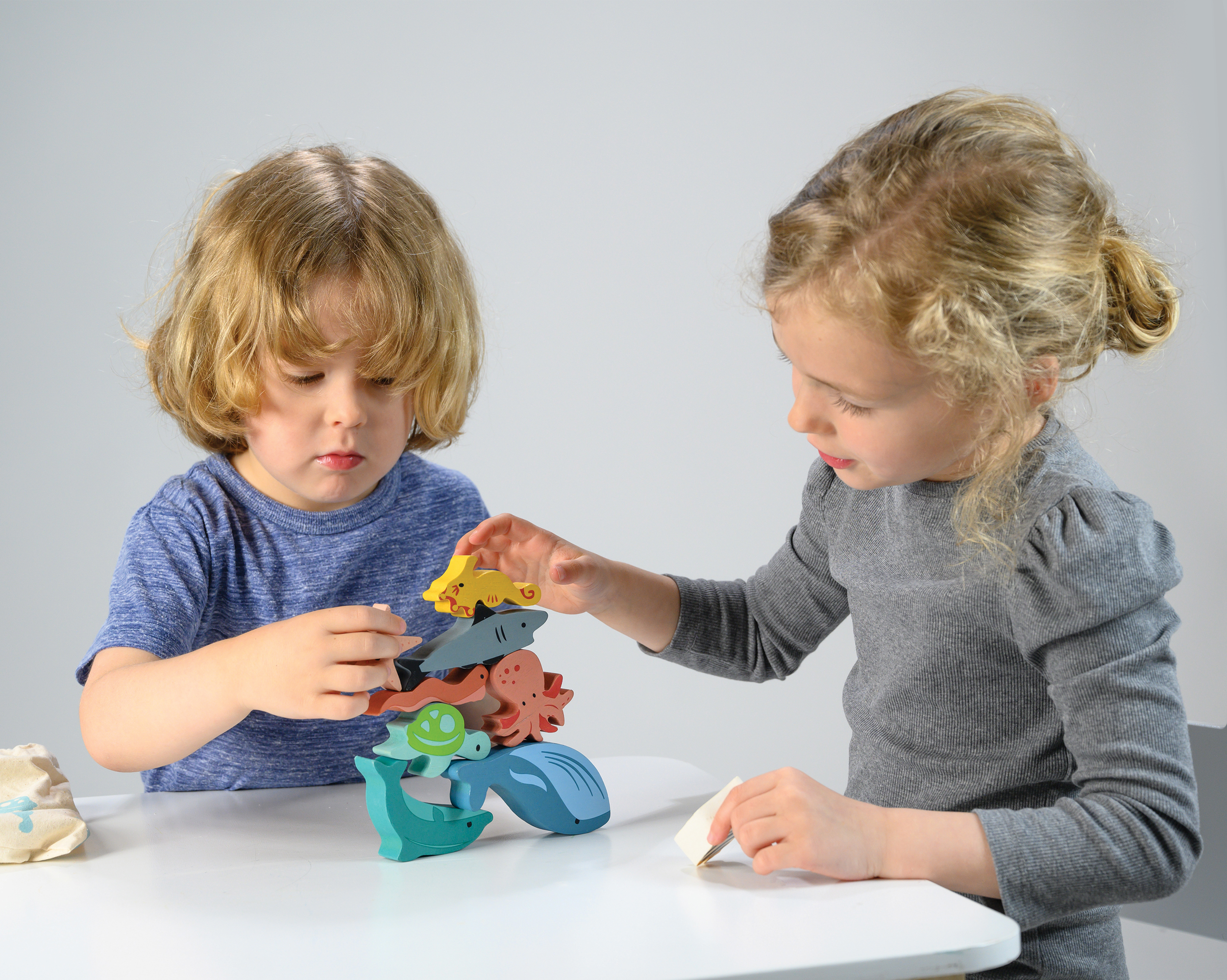 Lavinkite smulkiosios motorikos įgūdžius bei atkaklumą – statykite figūrėles vieną ant kitos ir stenkitės, kad jos nenugriūtų.