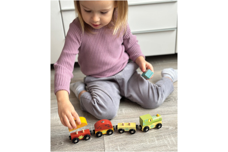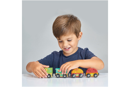 4 dalių rinkinys, kurį sudaro lokomotyvas ir 3 krovininiai vagonai, kurių viršutinės dalys, dekoruotos dinozaurų formomis, nusiima. Traukinio komponentai jungiami magnetukais, kurie gali būti derinami ir su kitais Mentari traukinių rinkiniais.