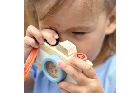 Sužadinkite mažojo fotografo vaizduotę su dailiu mediniu fotoaparatu!