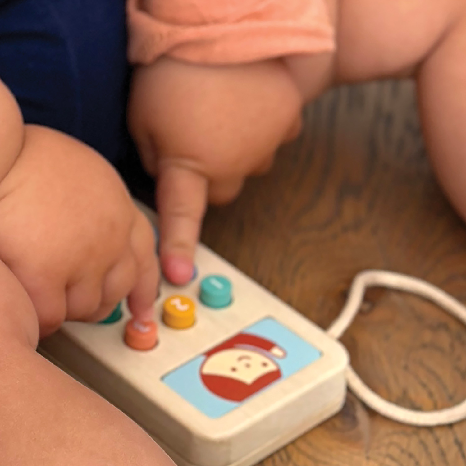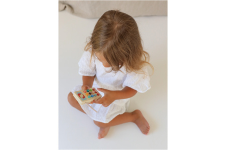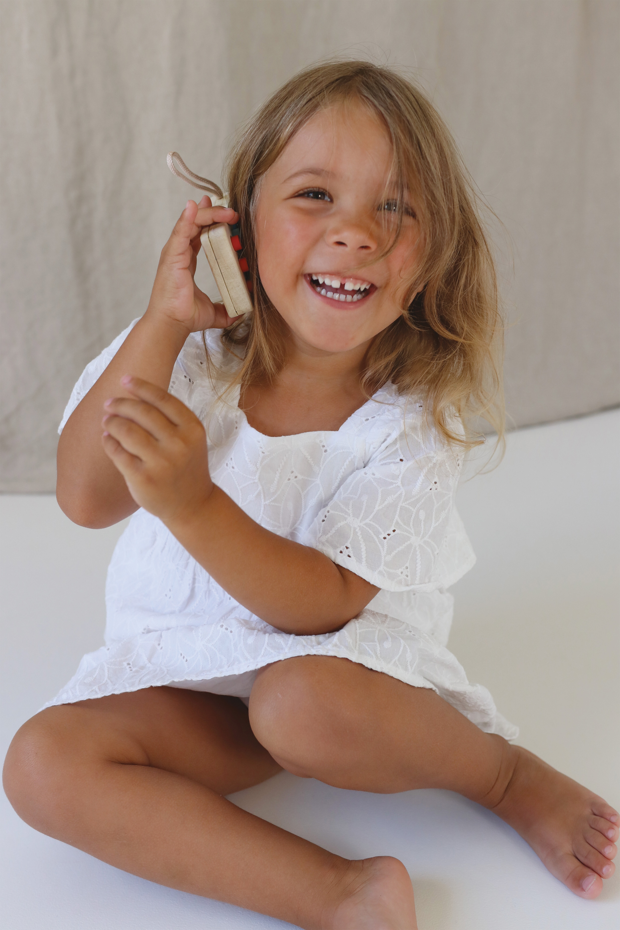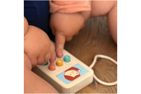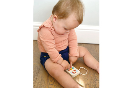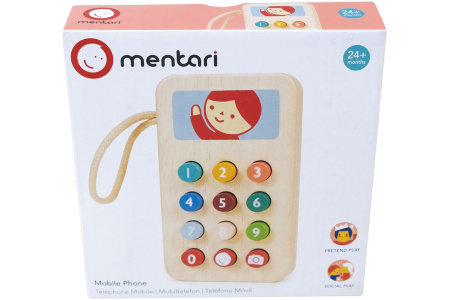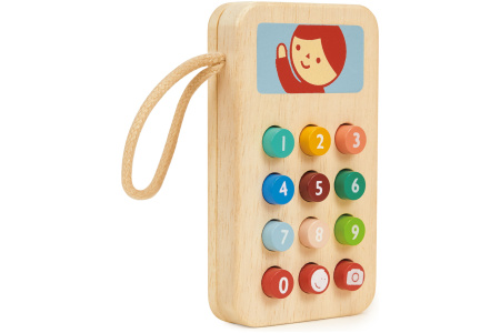 Šis žaislinis telefonas turi 12 mygtukų ir virvelę, kuria patogu nešiotis telefoną.