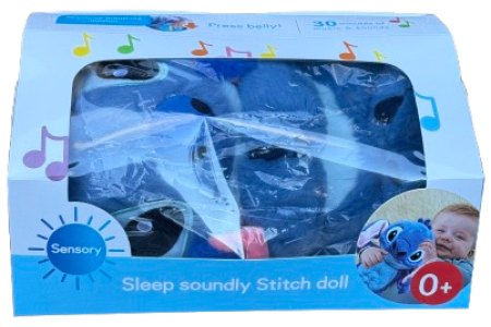 Švelnus „Stitch“ migdukas padeda mažyliui nusiraminti ir užmigti. Paspaudus pilvuką, jis groja lopšines/ramias melodijas, o minkštas pliušas suteikia saugumo ir jaukumo pojūtį.