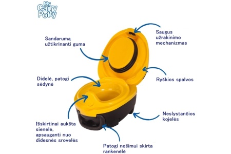 My Carry Potty – tai išskirtinai kompaktiškas nešiojamas asmeninis vaiko naktipuodis. Skirtas naudoti namie, neštis einant į parką, parduotuvę ar pasiimti važiuojant į keliones. Tai pagalba tėvams, tuo sudėtingu periodu, kada norite išmokyti vaiką prašytis ant puoduko ar į tualetą.
