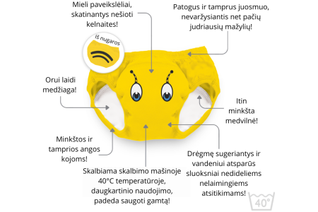 Ant kelnaičių esantys mieli personažai iškart patraukia vaikų dėmesį, todėl jas mielai užsideda net pirmą kartą! Su mokomosiomis atprastukėmis Jūs: