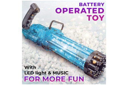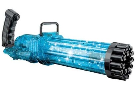 Begalinės pramogos jūsų vaikams! Burbulus formuojantis žaislas, kuris per minutę gali sukurti šimtus spalvingų burbulų.Šautuvas turi 21 skylutę muilo burbulams pūsti.