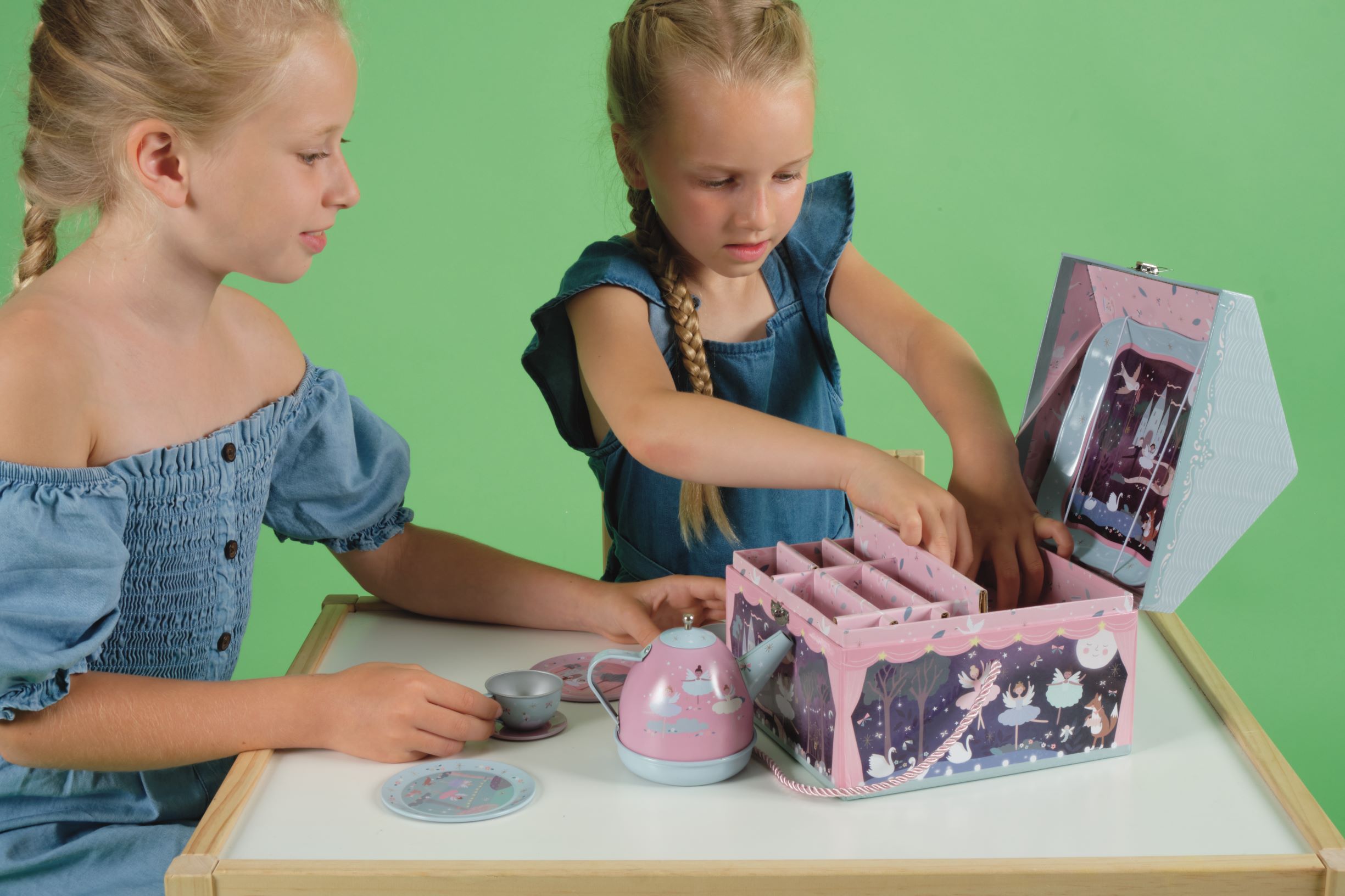 Dėžutė ir indukai apipavidalinti baleto vaizdais, kurie padeda dar labiau pasinerti į žaidimo magiją. Juk arbatos galima išgerti ir pertraukos metu tarp pirmos ir antros spektaklio dalies.