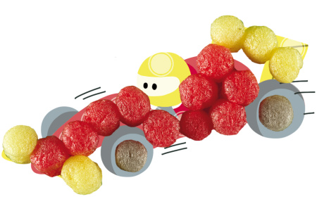 - Pagamintas iš kukurūzų ir nudažytas maistiniais dažikliais