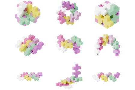 Norėdami patirti dar daugiau įspūdžių, sudėliokite didesnius objektus, sujungdami turimą HEXEL su kitais HEXEL. Sukursite tarsi molekulių ar DNR vaizdinius.